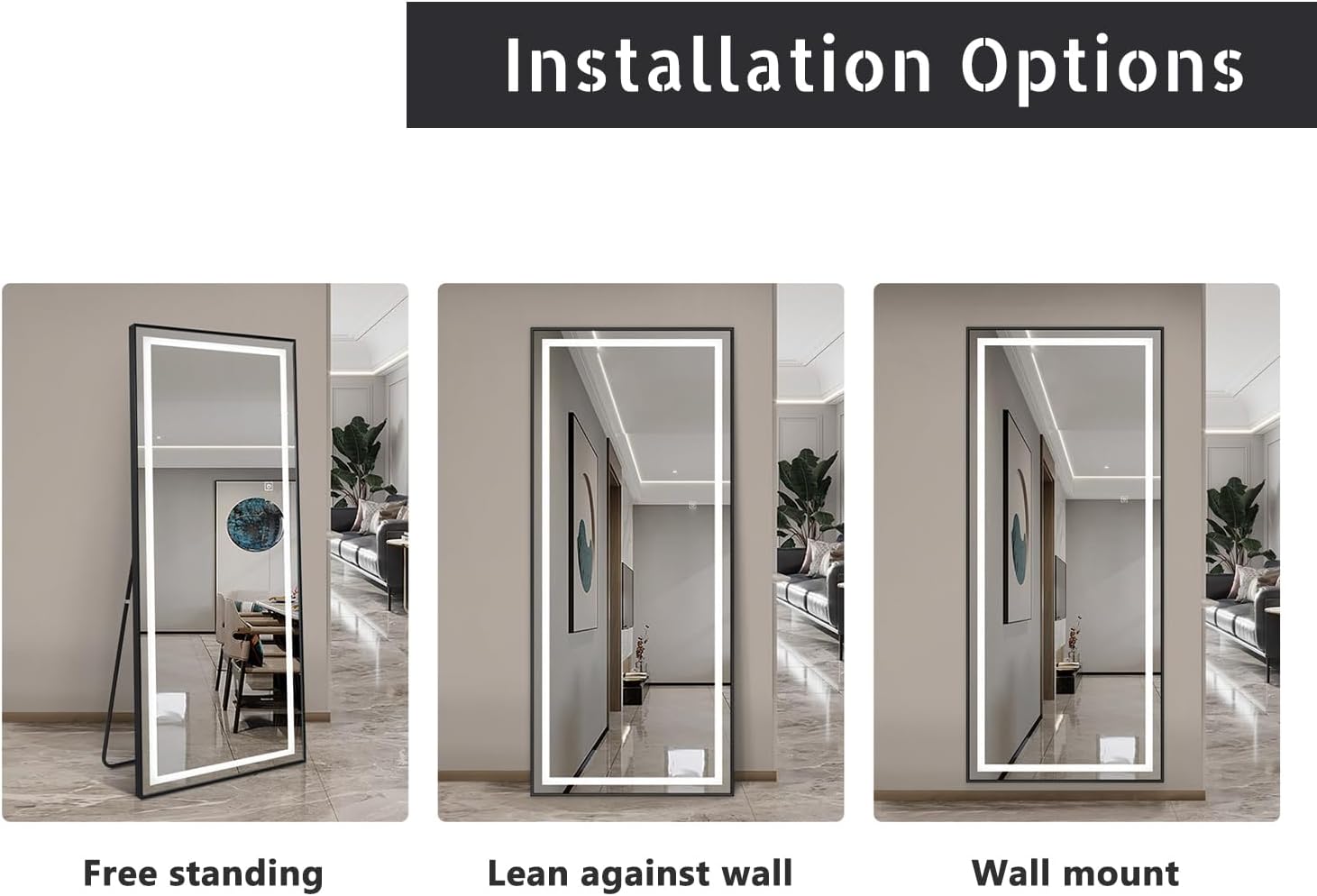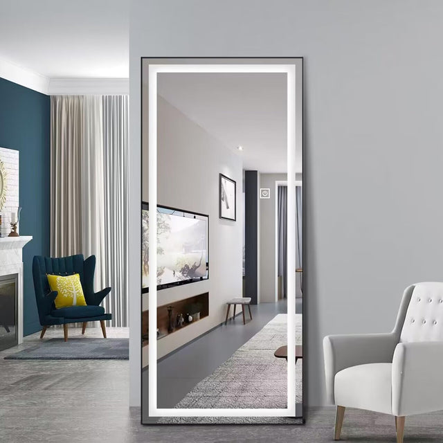 Maverick Color-Changing LED Full Length Mirror combines simple, aesthetic design with functional sophistication. Whether mounted vertically to complement your vanity or standing on the floor, it offers versatile styling options. The unique, color-changing LED lighting adds a modern touch while delivering the perfect illumination for grooming and dressing.